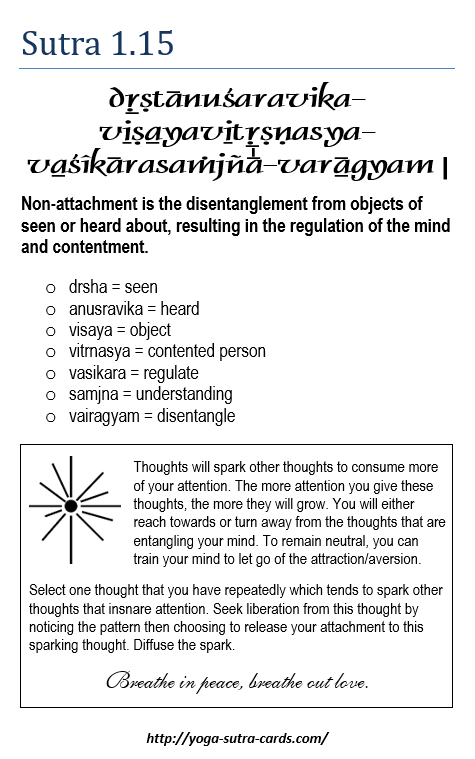 “Dispassion is the freedom from reaction and a lessening of mental activity. If you decide not to react, that places you in control of your thoughts and feelings – not someone or something else. Rather than being torn this way and that, you remain serene. That is why dispassion is such an important part of yogic practice.”