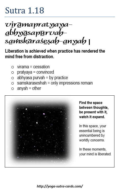 1.18 Liberation is achieved when practice has rendered the mind free from distraction.